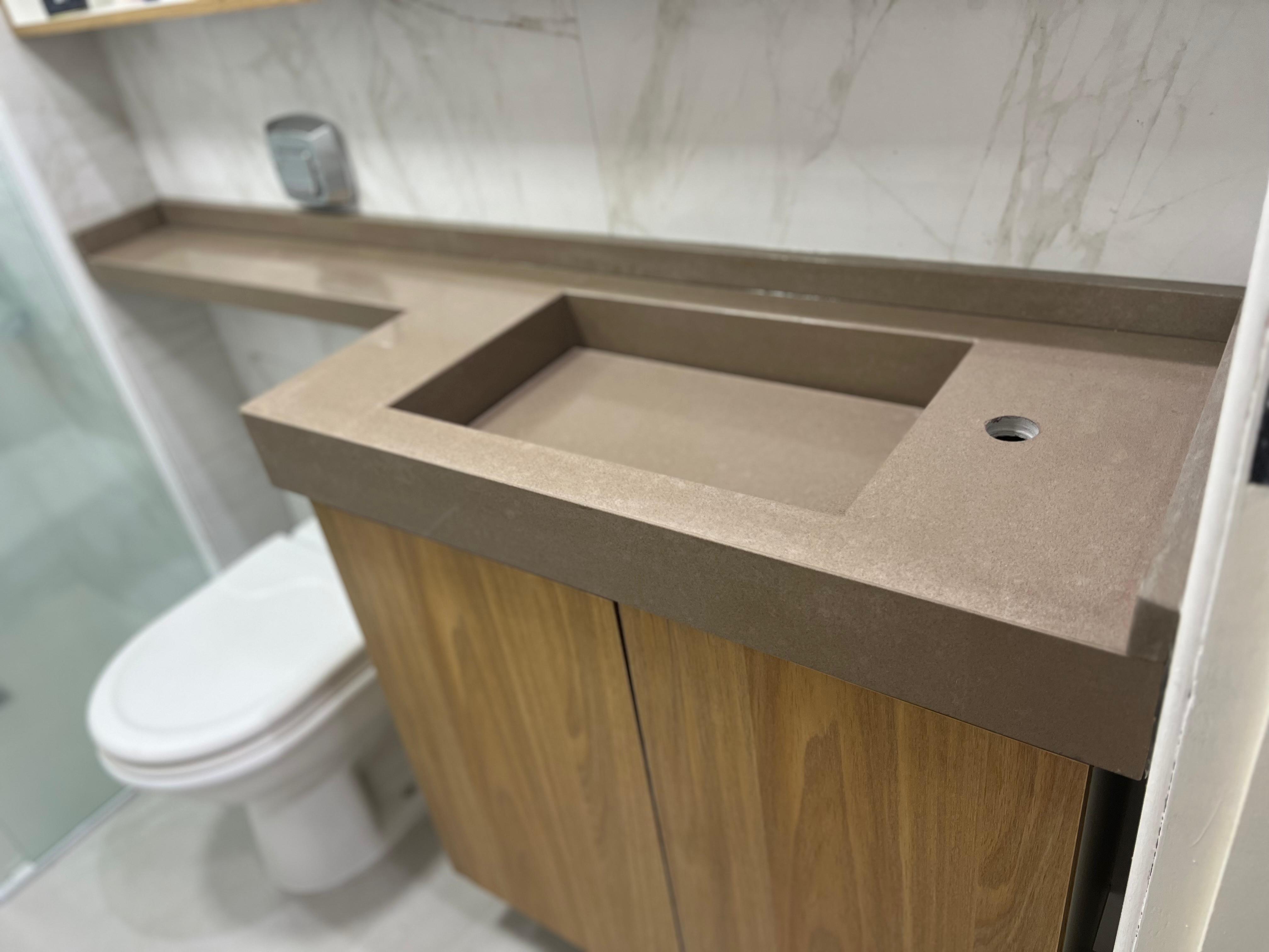 Criamos cubas esculpidas, nichos e revestimentos que deixam o banheiro mais moderno, organizado e funcional, aproveitando melhor cada espaço.